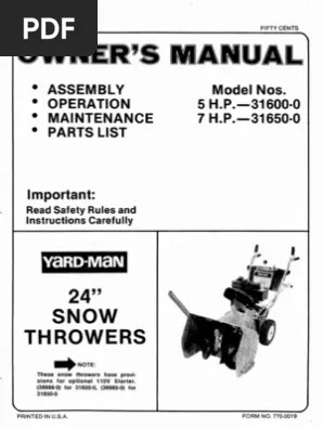 Home » » Yardman Snowblower Manual - Yard Machines By Mtd 800 Series Snow Thrower Operators Manual With Parts List Ebay -
